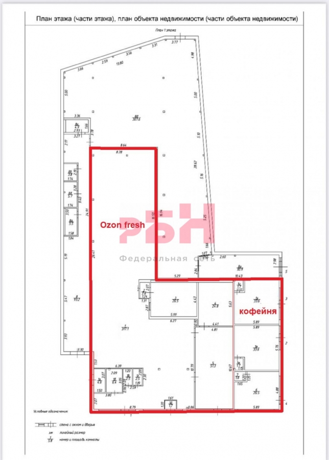 - Арендатор 1 - Озон фреш, площадью 441.8 кв.м, арендный поток составляет 630.000 рублей + коммунальные платежи