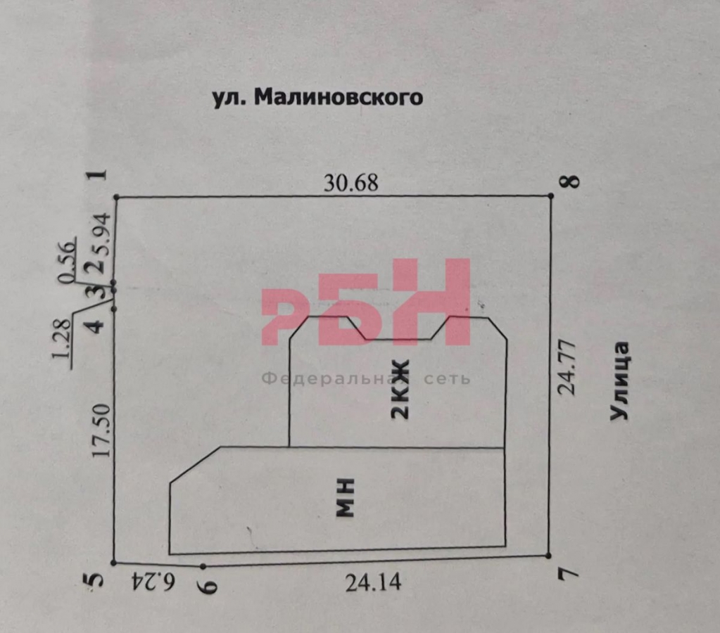 - фасад на ул. Малиновского - 30,68 метров